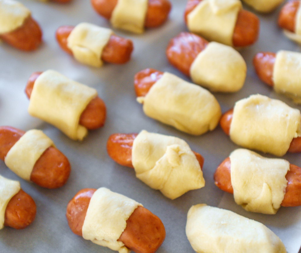 TIP: Refrigerated dough is easier to work with so leave your dough in the fridge until you are ready to roll up your hot dogs.