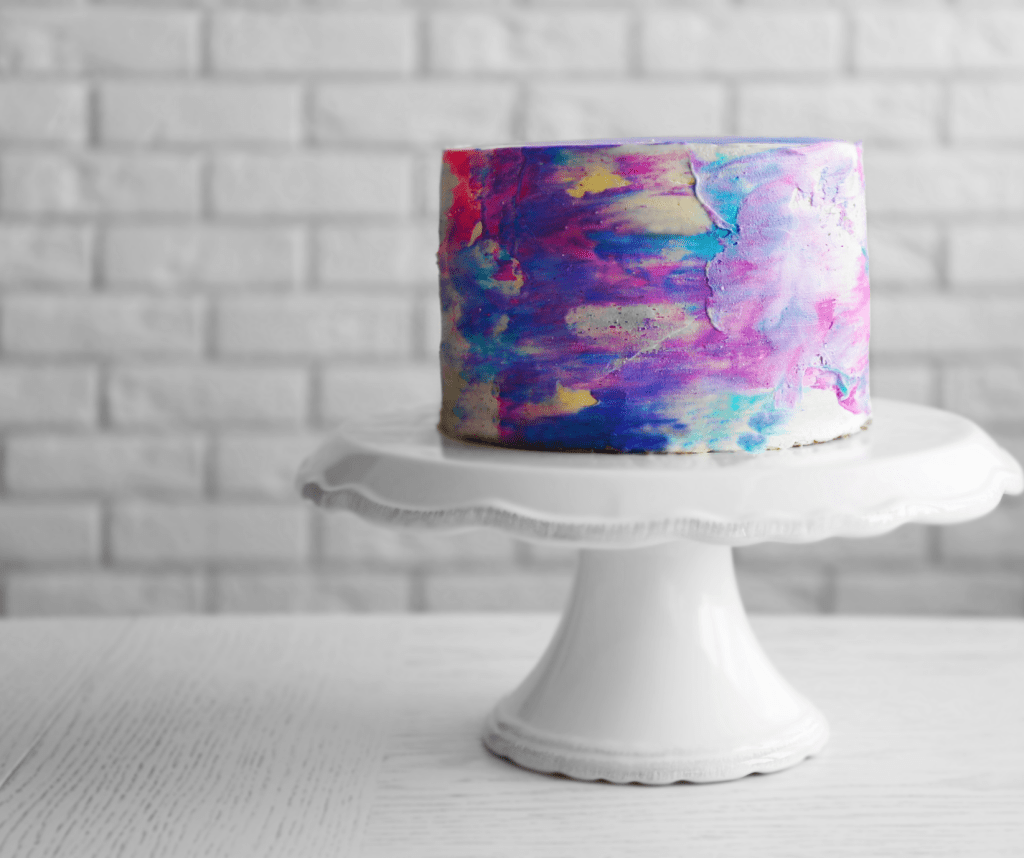 Tie Dye Cake: Make an impact with this messy and sweet cake idea! With some well-placed smears of frosting in multi-colors you can impress friends and family with this fun tie-dye homemade cake!
