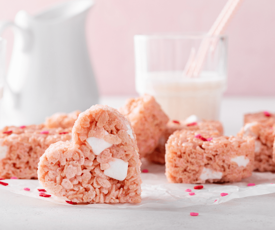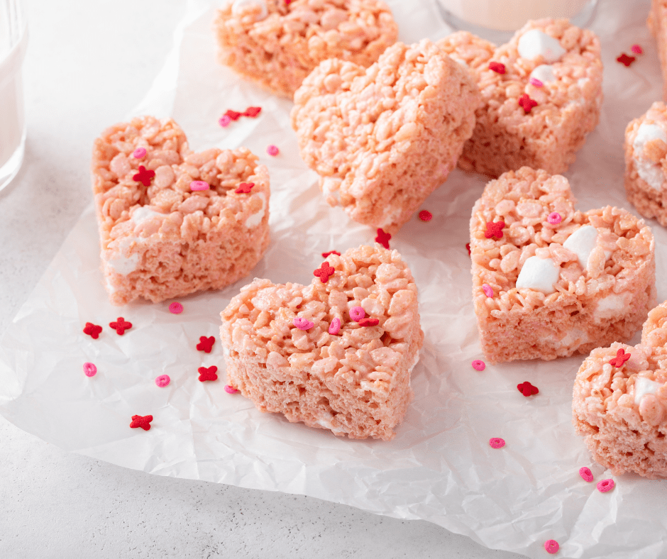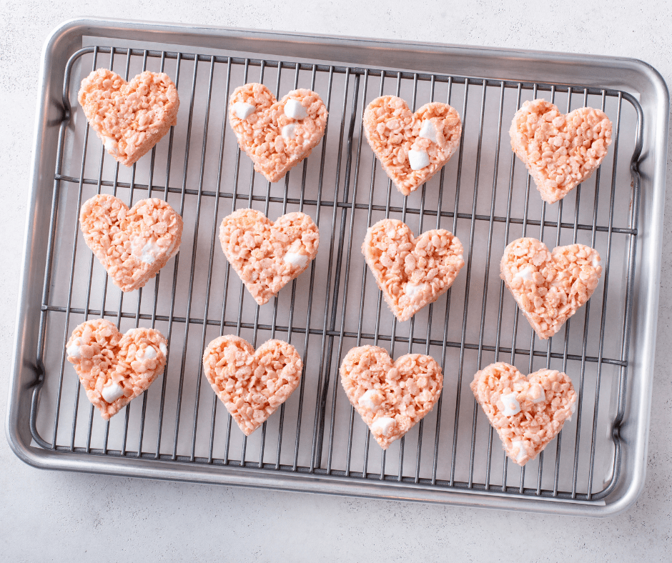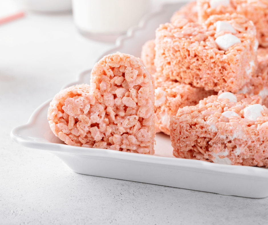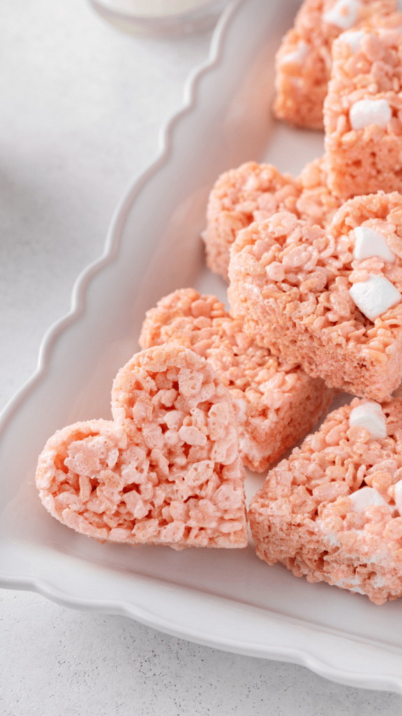 Set and Share the Love Allow your Valentine’s Heart Rice Krispie Treats to cool and set. Once they’ve firmed up, it’s time to share the love. These treats are not only a delicious sweet indulgence but also a delightful creation that makes for a perfect gift or a centerpiece for your Valentine’s Day celebration.